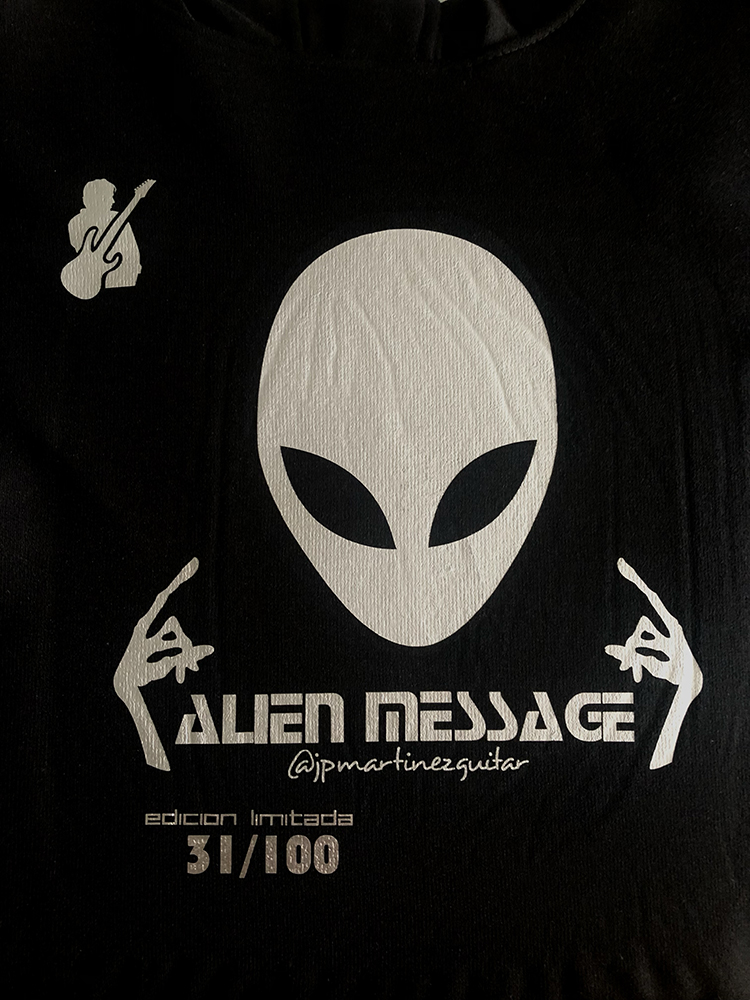 Este diseño exclusivo, hermanado con la versión del hoodie Alien Message, es más que una prenda: es tu conexión directa con el mensaje, la atmósfera y la energía que se desprenden de mi música. Cada vez que la uses, llevarás contigo una frecuencia distinta, un instante distinto, un fragmento del universo que creamos juntos.